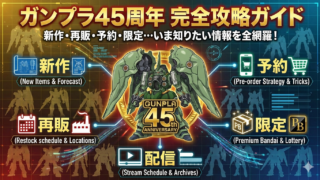 ガンプラ45周年記念スペシャル配信の新作要点から、再販時期・予約方法・プレバン限定・MGSDクシャトリヤ発売日までを一次情報で整理。見逃し対策や配信スケジュールも網羅。初心者でも実践しやすい購入戦略とチェックリストで、確実に“買える・見逃さない”をサポート。