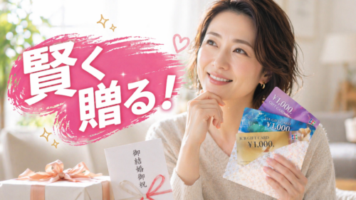 Eメールタイプなら決済後ほぼ即座に届く最速の選択肢です。ただし、結婚祝いなどフォーマルな贈り物には「Eメールタイプ」ではなく「ボックスタイプ(現物カード)」が正解です。メールで金額が丸見えのギフトカードはフォーマルな場面には不向きです。