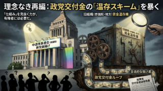 衆院だけ合流し参院を残す「中道改革連合」。その狙いは理念ではなく政党交付金の温存にある。合法の抜け道が示す、政治資金制度の歪みと有権者への課題を掘り下げる。